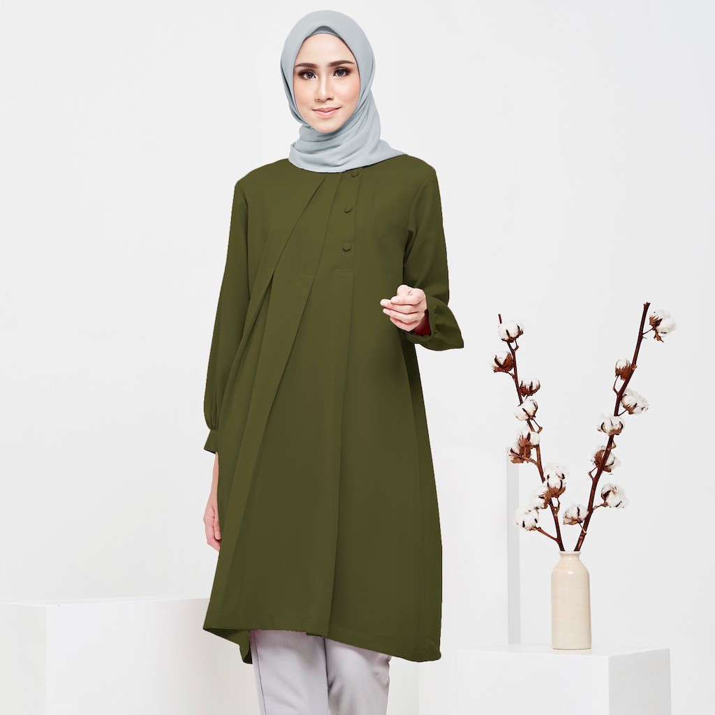 Tunik Toyobo Warna Hijau Army Fesyen Wanita Pakaian Wanita Atasan Di Carousell