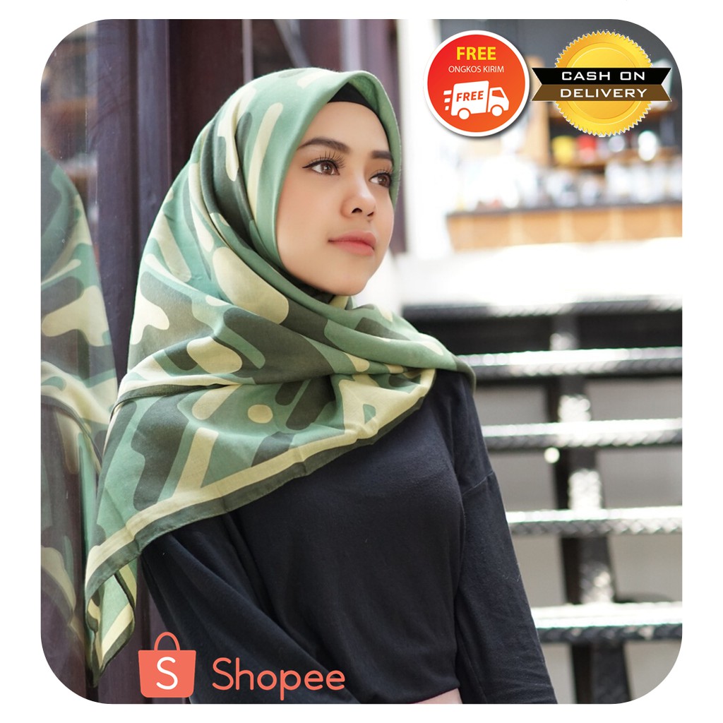 Premiero Jilbab Segiempat Dillafisa Hijau Army Shopee Indonesia