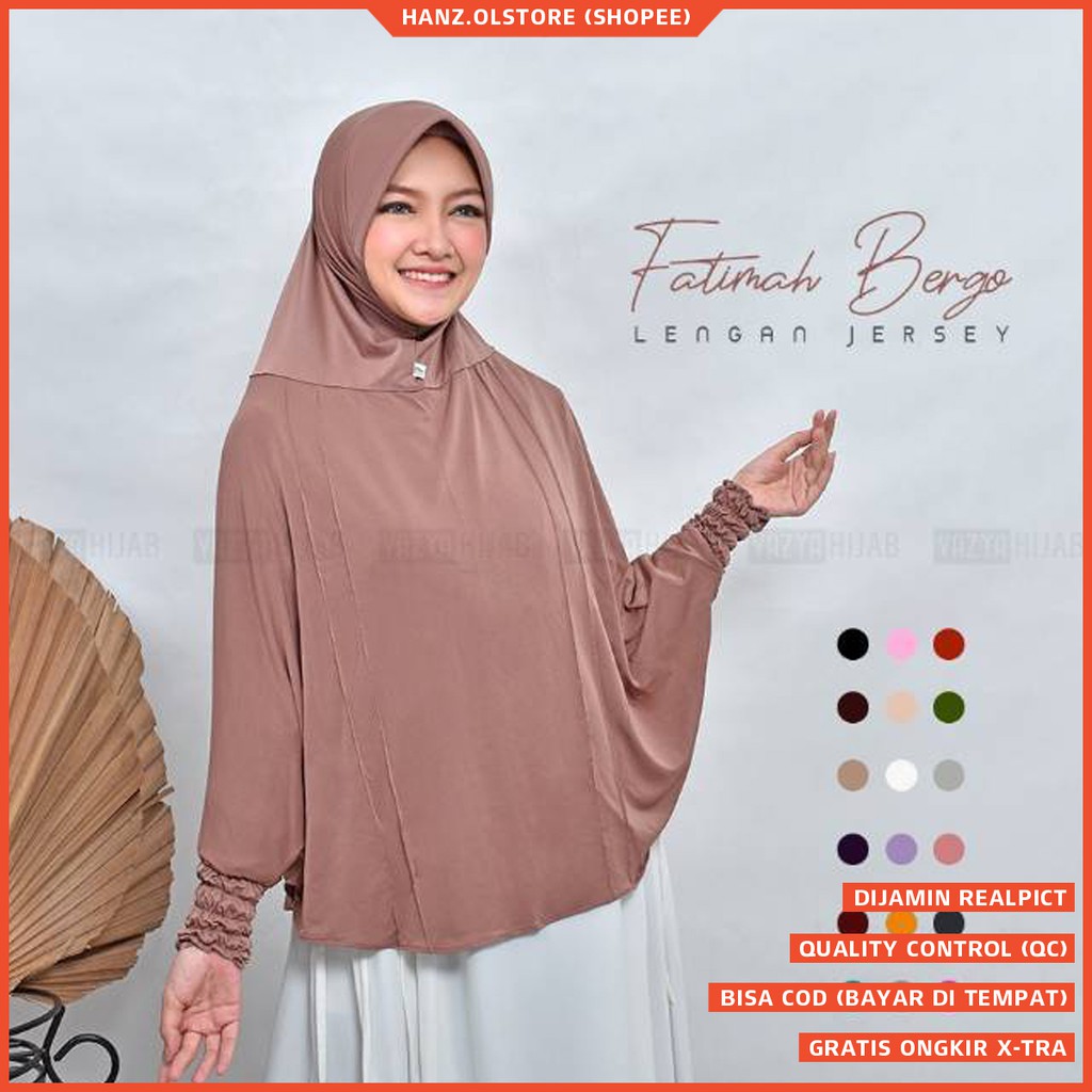 Fatimah Hijab Jilbab Bergo Lengan Syari Kerudung Krudung Berlengan Bahan Jersey Model Terbaru Shopee Indonesia