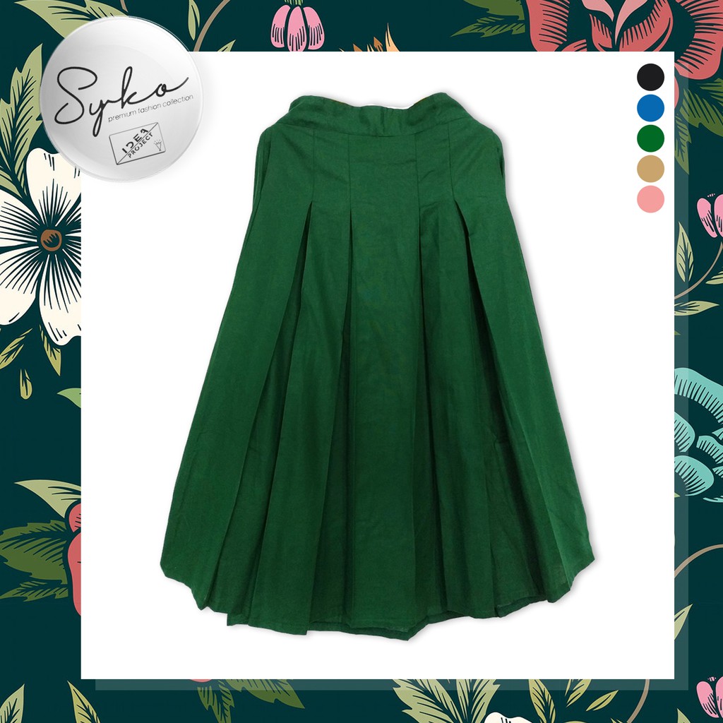 Rok Rempel Wanita Panjang Model Korea Warna Hijau Botol Bahan Katun Premium Shopee Indonesia