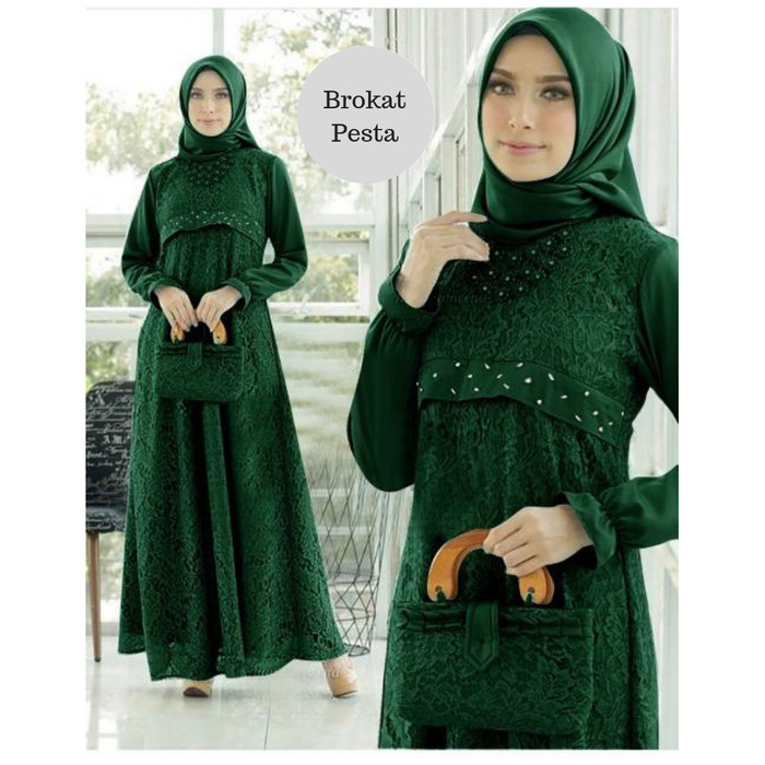 Model Baju Gamis Brokat Warna Hijau Botol Inspirasi